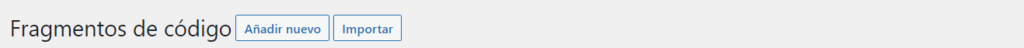 Al hacer clic en ella, se abrió el panel de administración de Code Snippets. Al principio, pude ver algunos fragmentos de código por defecto, pero decidí eliminarlos para tener un espacio limpio. Luego, seleccioné la opción «Añadir nuevo» para agregar mi propio fragmento de código.