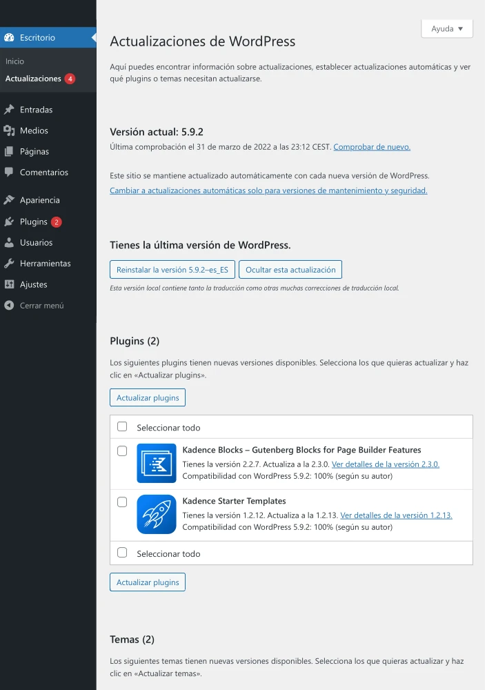 Desde hace meses, antes del 2021, puedes activar las actualizaciones automáticas con la finalidad de estar siempre a la última versión de los diferentes componentes de tu sitio web.